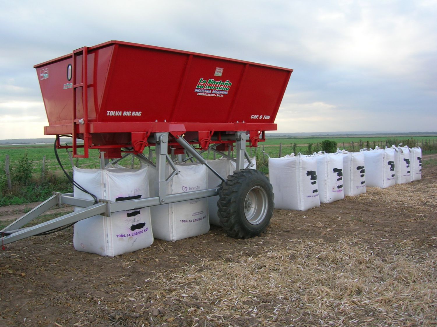 - Proceso de llenado bolsones sencillo. Una ves terminado se mueve el tractor hacia delante, bajando la tolva y los mismo salen por detrás.